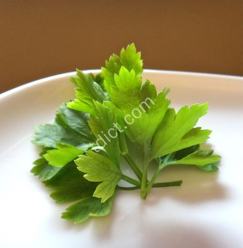 洋芫荽一种由培育而成得欧亚草本植物(皱叶欧芹欧芹属),长有扁平或卷曲得三层复叶,用作调料或装饰菜